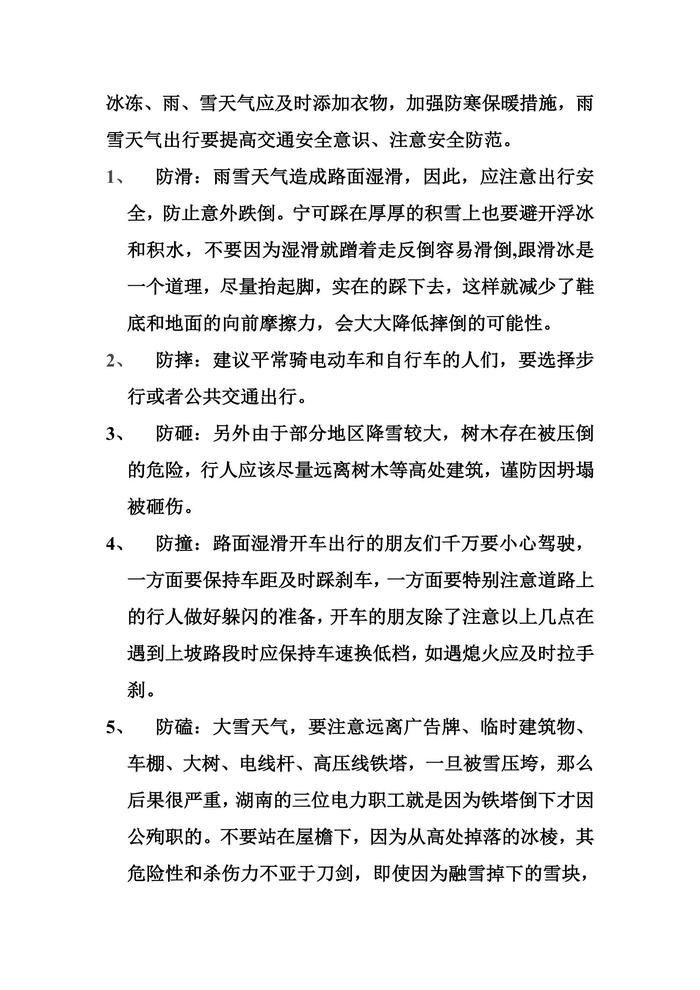 雪天安全注意事項(xiàng)(1)doc