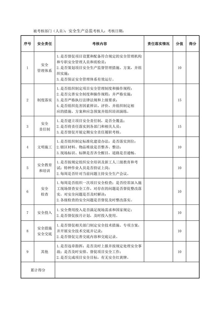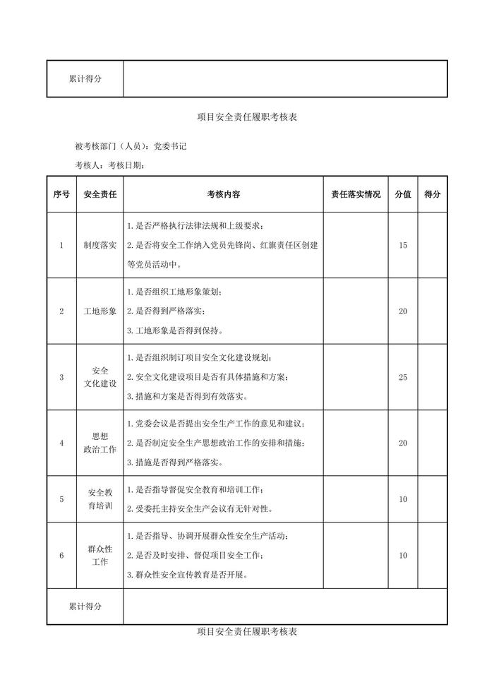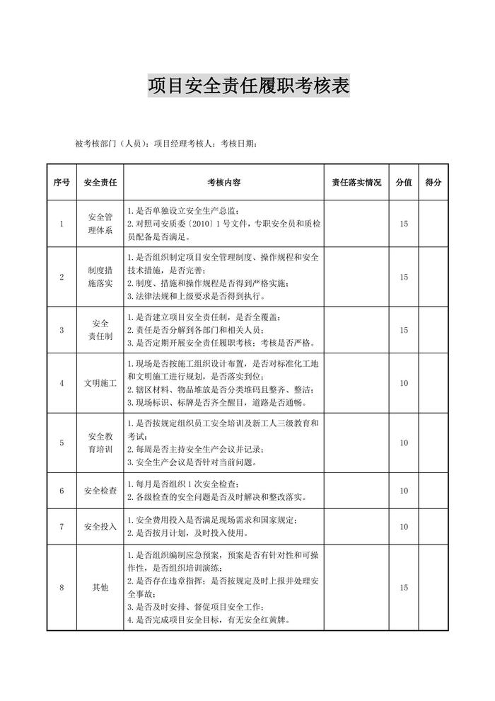 安全生產責任制履職考核表匯編(17頁)docx