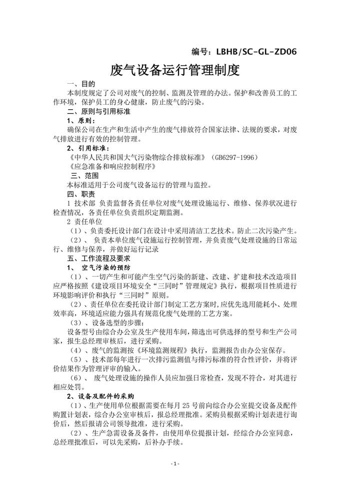 廢氣設(shè)備運(yùn)行管理制度docx