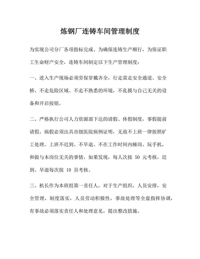 煉鋼廠連鑄車間管理制度docx