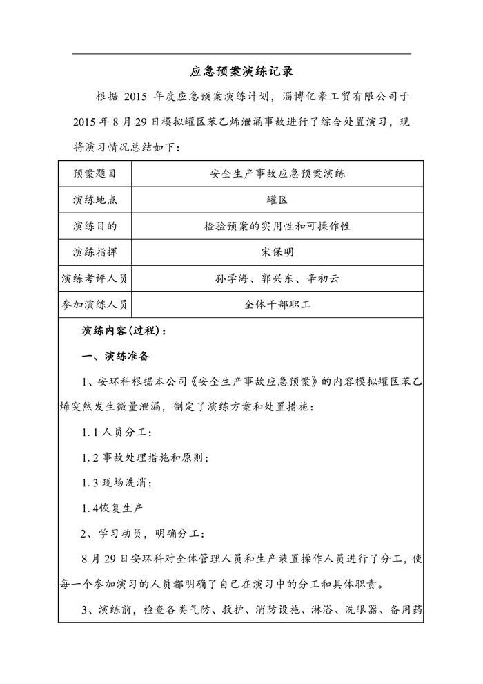綜合、專項(xiàng)應(yīng)急預(yù)案演練記錄(1)doc