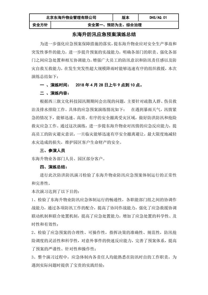 XX物業(yè)防汛應急預案演練總結docx