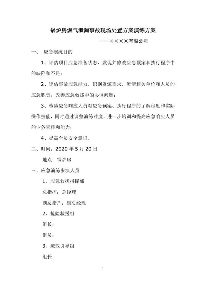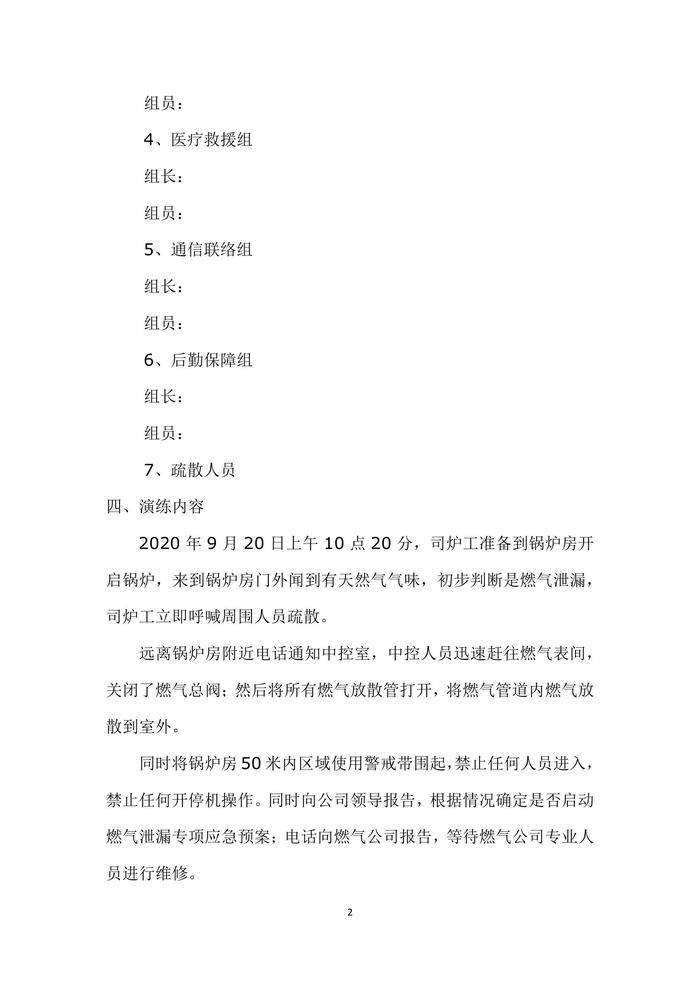 鍋爐房燃?xì)庑孤┦鹿尸F(xiàn)場處置方案演練方案docx