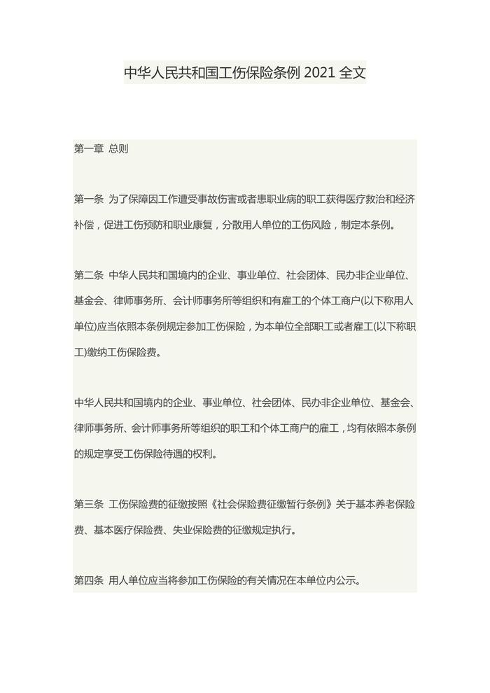 中華人民共和國工傷保險條例2021全文docx