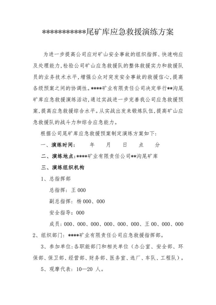 尾礦庫(kù)應(yīng)急救援演練方案docx