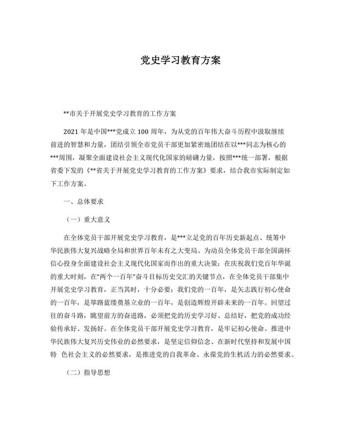 黨史學(xué)習(xí)教育方案docx