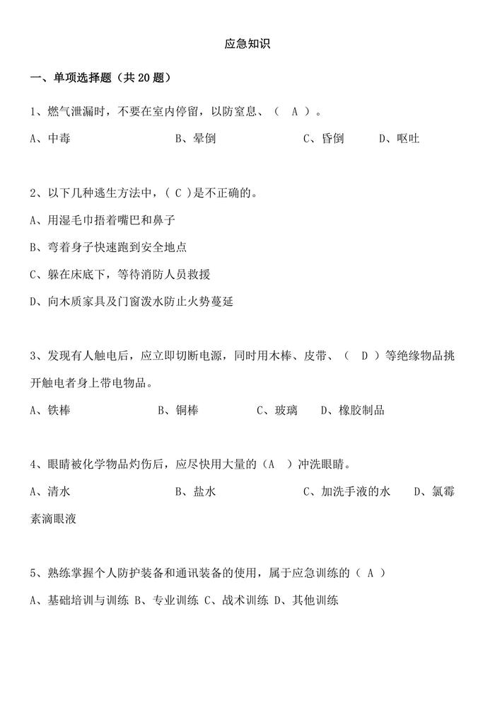 F20220308之搶答賽題庫:應(yīng)急知識docx