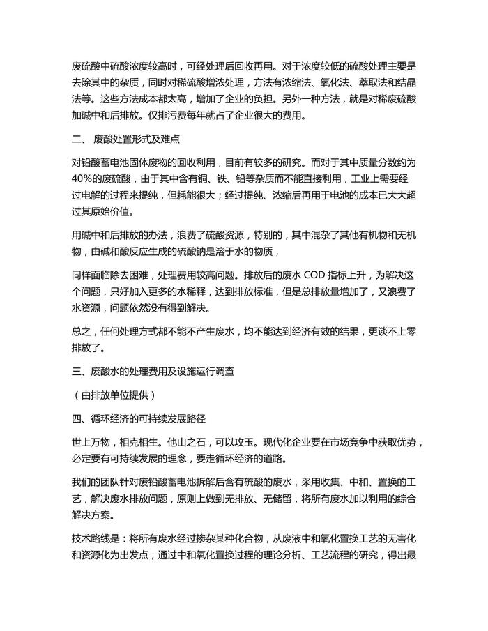 鉛酸電池企業(yè)廢酸水的解決方案docx