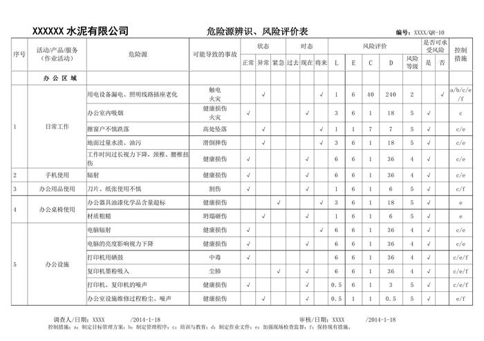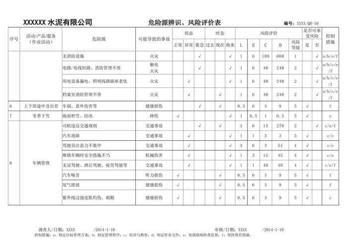 水泥生產(chǎn)企業(yè)一般水泥廠(chǎng)危險(xiǎn)源辨識(shí)、風(fēng)險(xiǎn)評(píng)價(jià)表(1)doc 水泥生產(chǎn)企業(yè)一般水泥廠(chǎng)危險(xiǎn)源辨識(shí)、風(fēng)險(xiǎn)評(píng)價(jià)表(1)doc