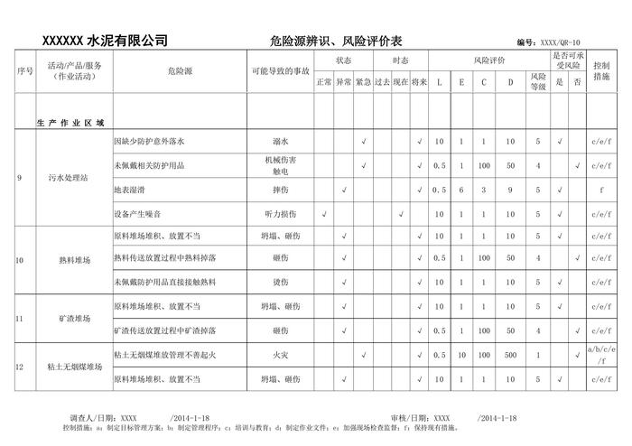 水泥生產(chǎn)企業(yè)一般水泥廠(chǎng)危險(xiǎn)源辨識(shí)、風(fēng)險(xiǎn)評(píng)價(jià)表(1)doc
