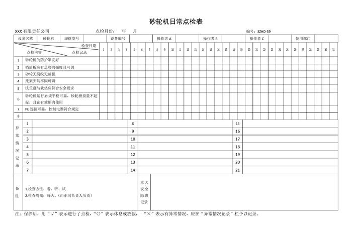 砂輪機日常點檢表doc