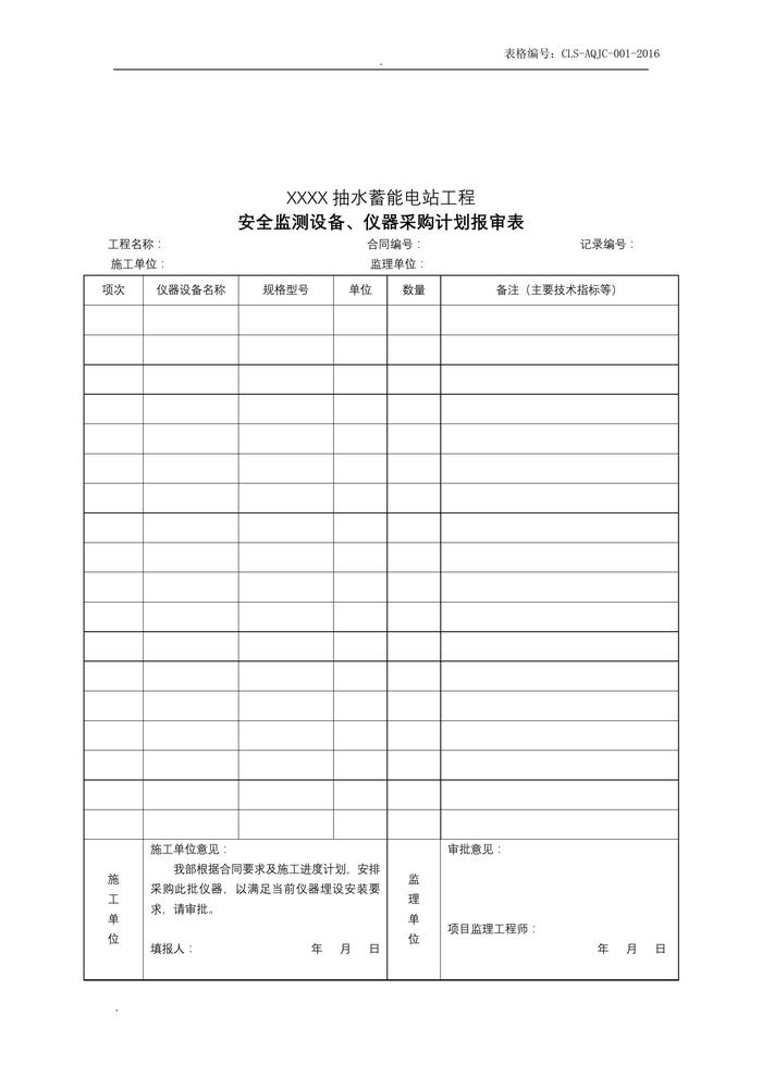 XX抽水蓄能電站安全監(jiān)測(cè)表格(報(bào)批版)(1)doc