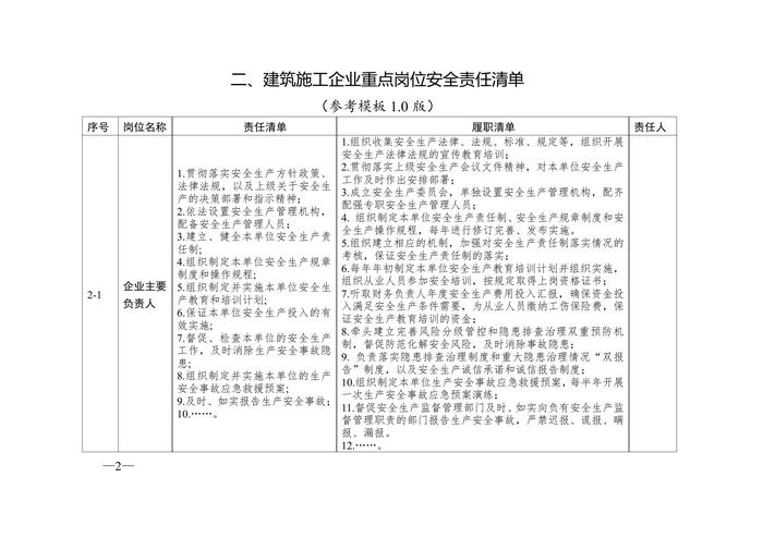 四川省建筑施工企業(yè)安全責(zé)任清單參考模板(10版doc