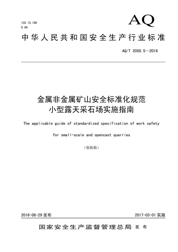 AQT 20505-2016 金屬非金屬礦山安全標準化規(guī)范 小型露天采石場實施指南pdf