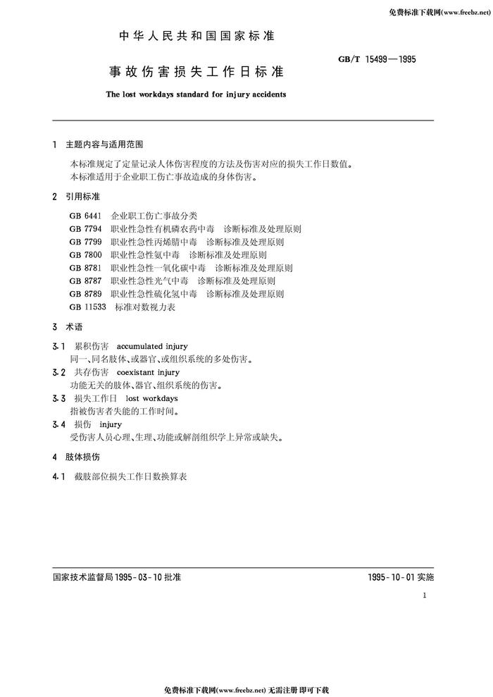 GB-T 15499-1995 事故傷害損失工作日標(biāo)準(zhǔn)pdf
