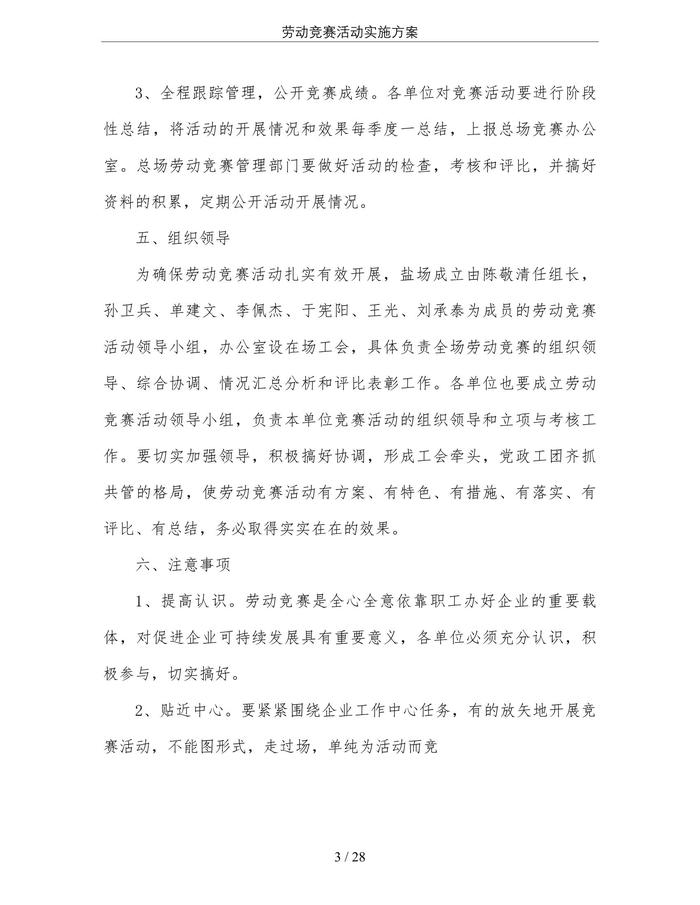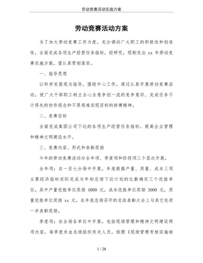 勞動競賽活動實施方案(28頁)(1)doc