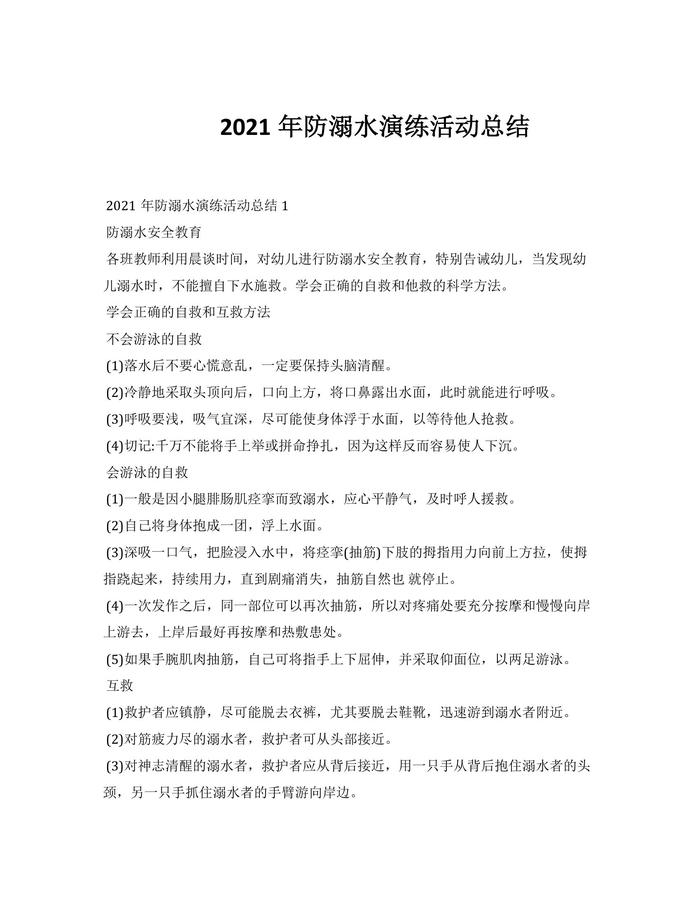 2021年防溺水演練活動(dòng)總結(jié)docx