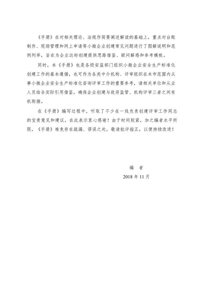 中小微企業(yè)安全生產(chǎn)標(biāo)準(zhǔn)化創(chuàng)建指導(dǎo)手冊(cè)(2018版)(1)docx