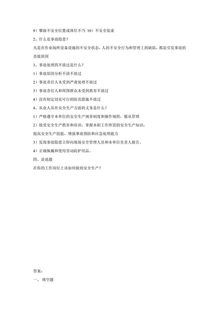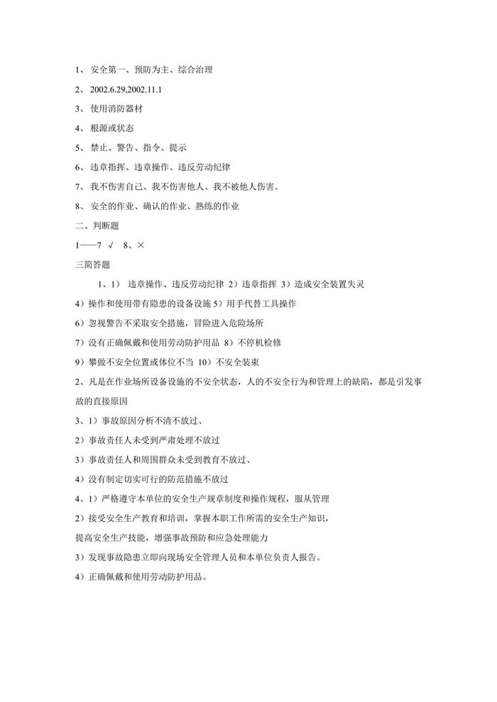 安全月全員安全試卷doc