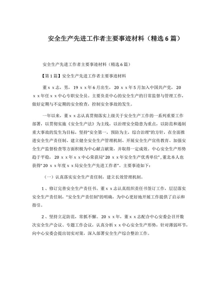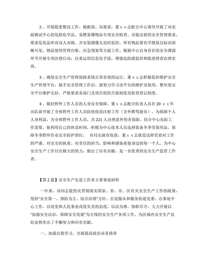 安全生產(chǎn)先進(jìn)工作者主要事跡材料docx