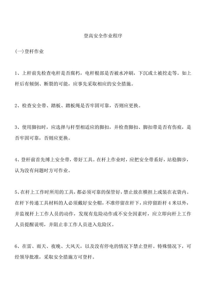 登高安全作業(yè)程序docx