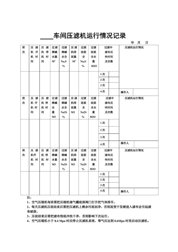 壓濾機(jī)運(yùn)行情況記錄(1)doc