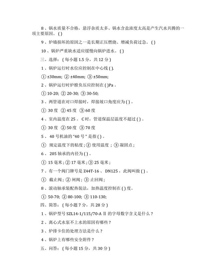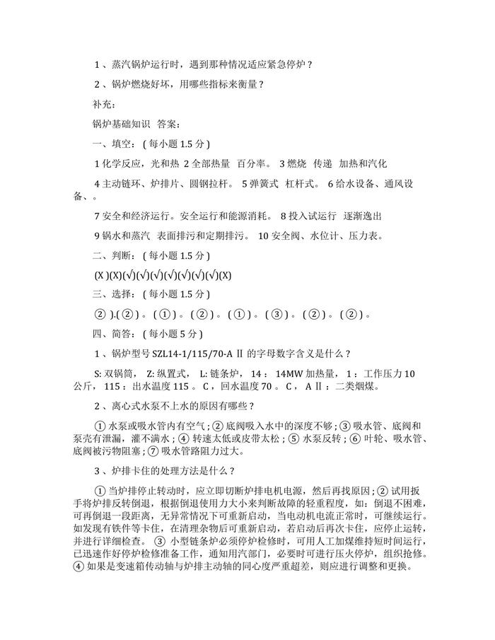鍋爐基礎(chǔ)知識(shí)考試試題(附答案)docx