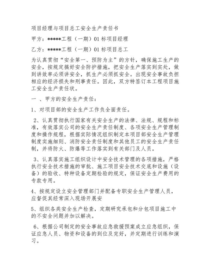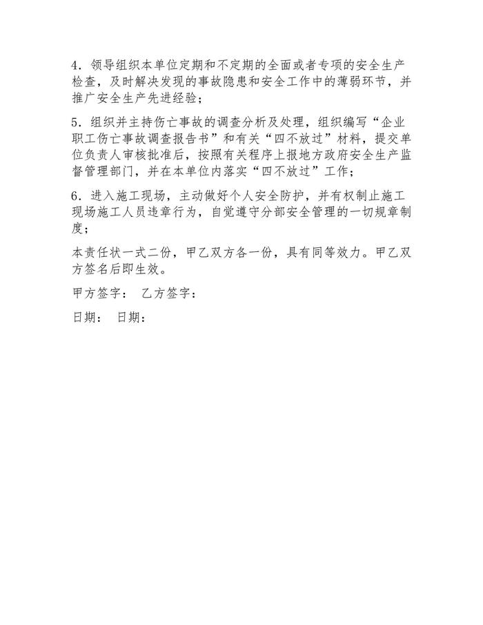 施工單位項目部層級安全生產(chǎn)責任書docx