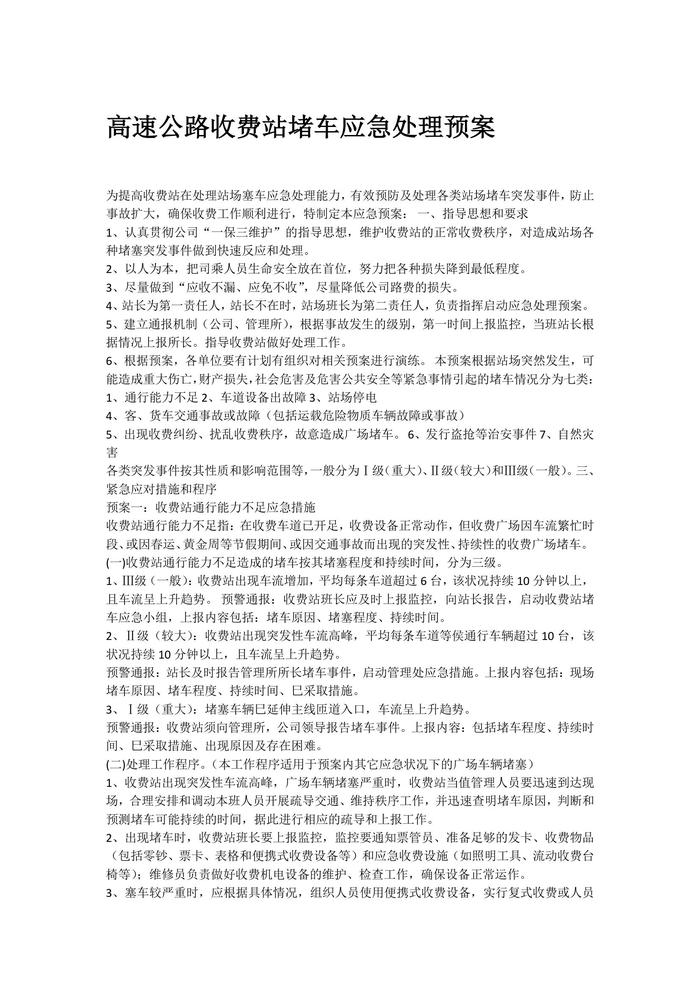 高速公路收費站堵車應(yīng)急處理預(yù)案(1)docx