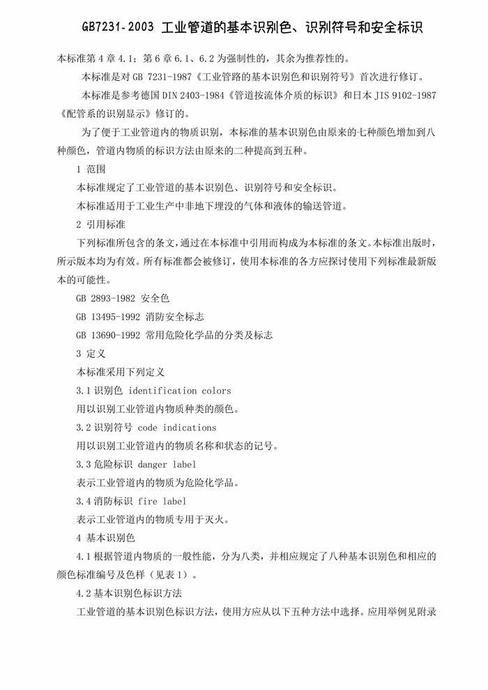 GB7231-2003 工業(yè)管道的基本識(shí)別色、識(shí)別符號(hào)和安全標(biāo)識(shí)pdf