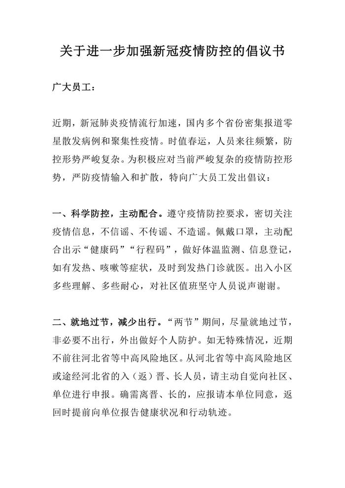 于加強(qiáng)新冠疫情防控的倡議書(1)docx