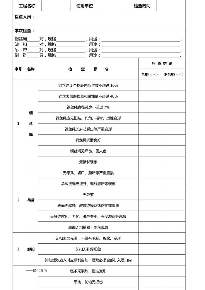 鋼絲繩、吊索具檢查表doc