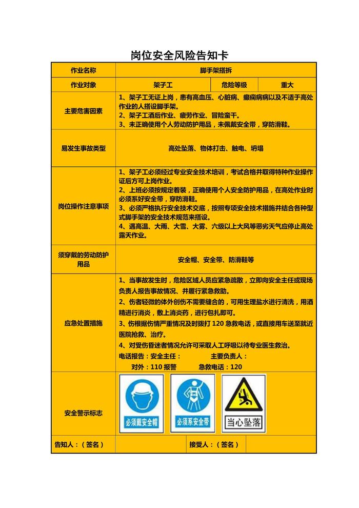 15份建筑施工各崗位安全風(fēng)險(xiǎn)告知卡docx