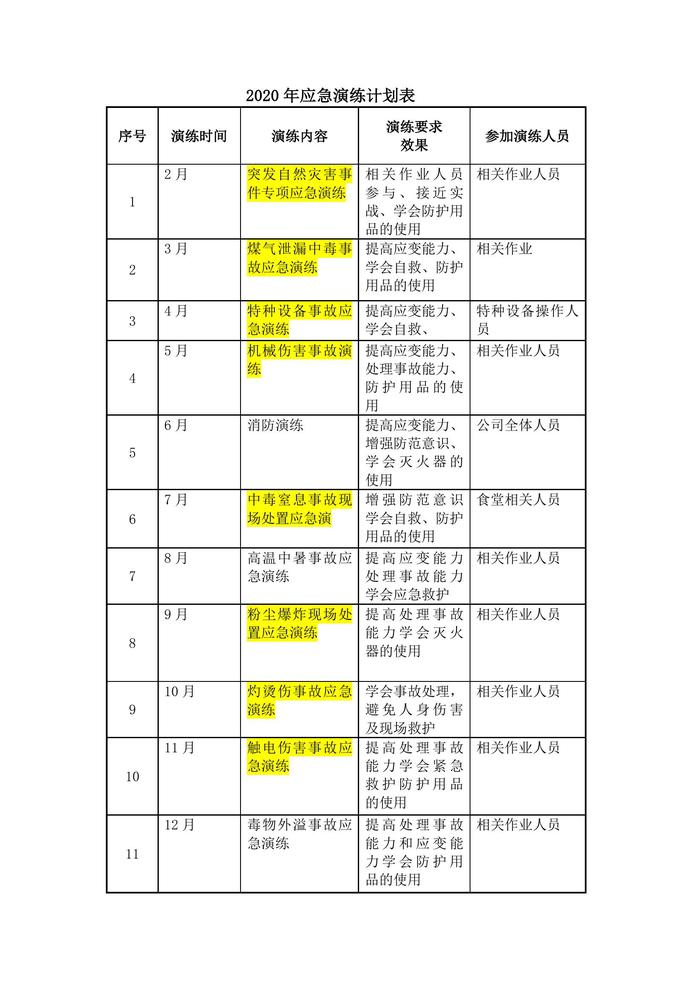 0年應急預案演練計劃表docx