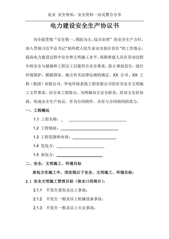電力建設(shè)安全生產(chǎn)協(xié)議匯編(超全62頁(yè))(1)doc
