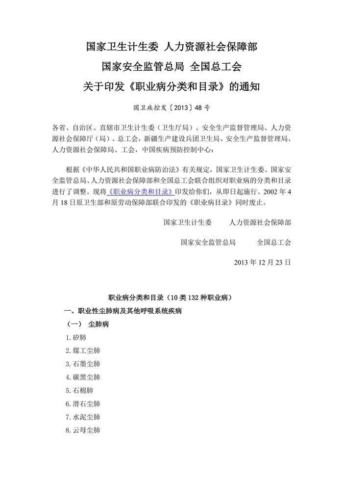 《職業(yè)病分類和目錄》(國(guó)衛(wèi)疾控發(fā)[2013]48號(hào))(1)doc