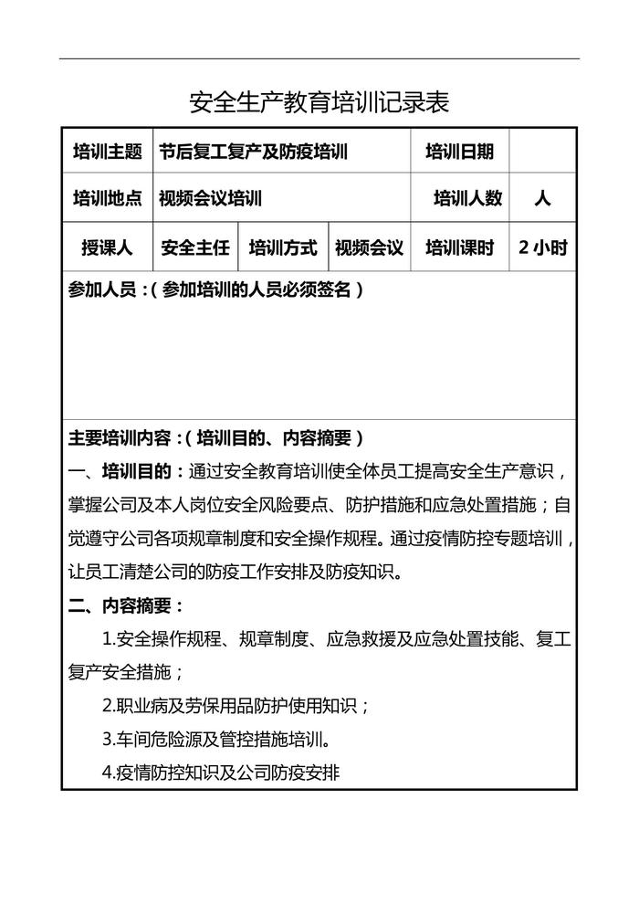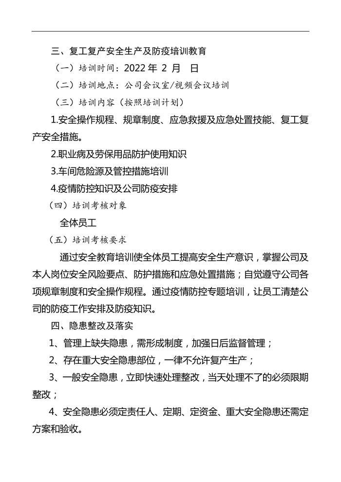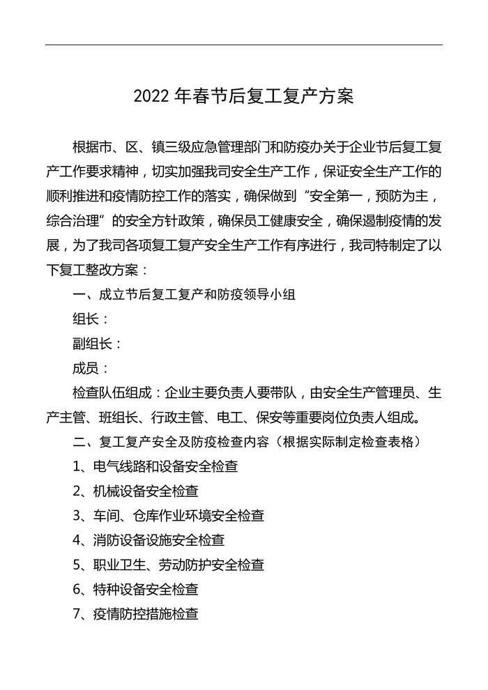 B20220206復(fù)工安全生產(chǎn)及防疫方案,附檢查表doc