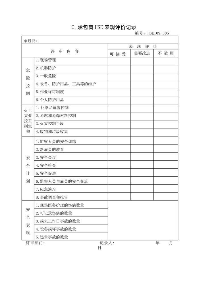 承包商施工現(xiàn)場安全檢查表格(53頁)(1)docx