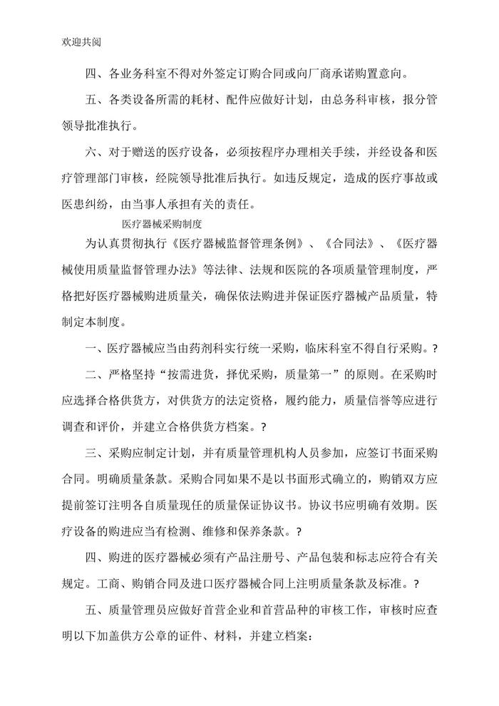 醫(yī)院醫(yī)療器械質量管理制度匯編(修訂版)doc