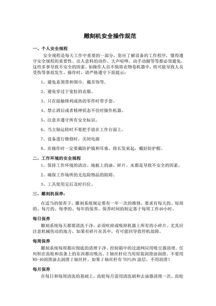 雕刻機(jī)安全操作規(guī)程doc
