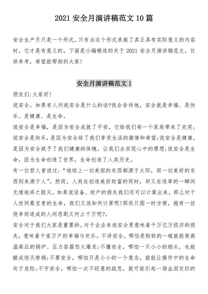 B20210514安全月文檔3:2021安全生產(chǎn)月主題演講稿匯編(22頁(yè))docx