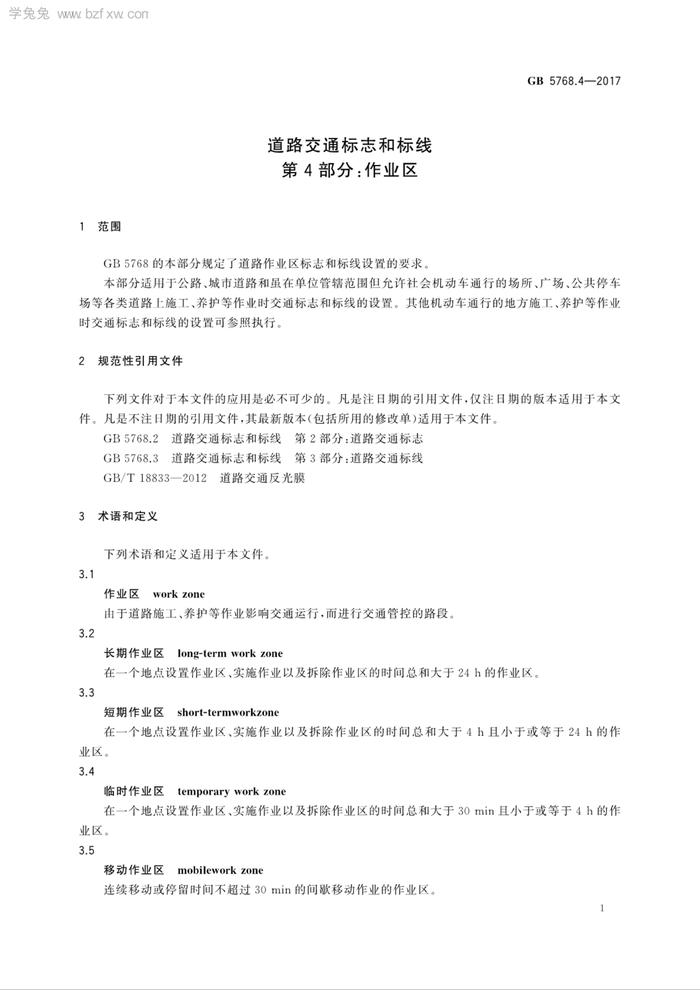 GB 57684-2017 道路交通標(biāo)志和標(biāo)線 第4部分作業(yè)區(qū)pdf