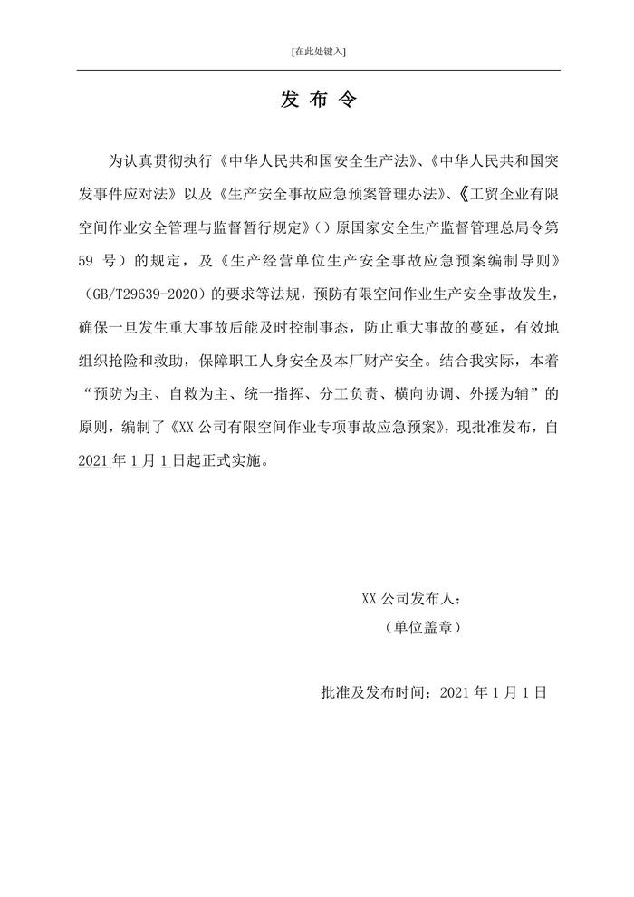 C20210731最新!有限空間作業(yè)專項(xiàng)事故應(yīng)急預(yù)案(24頁(yè))doc