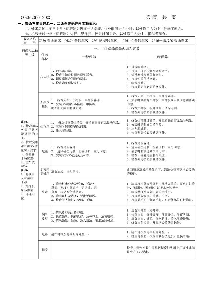 F20210723 設(shè)備三級維護保養(yǎng)內(nèi)容及要求doc