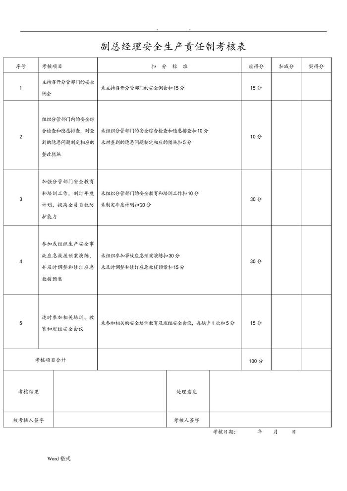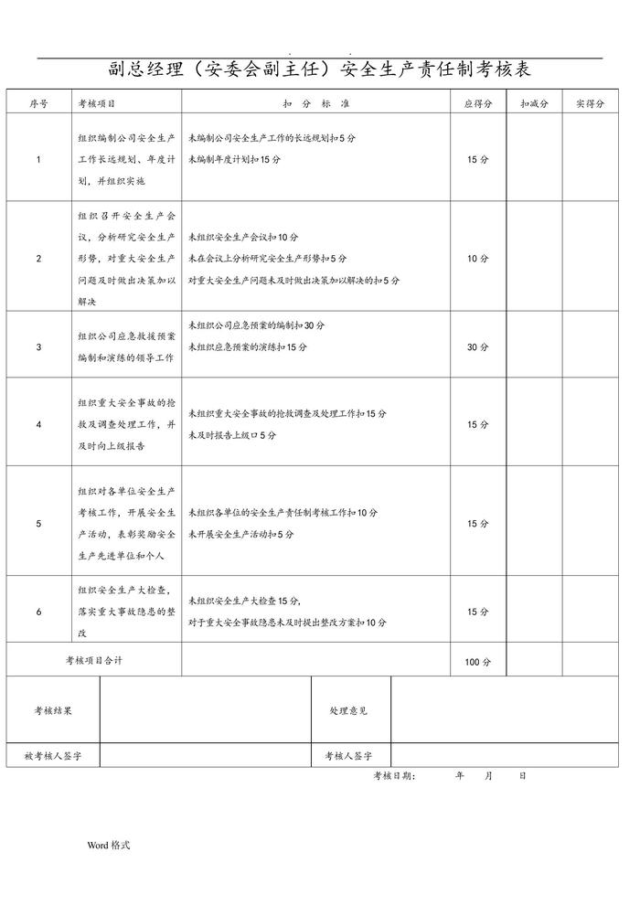 安全生產(chǎn)責任制考核表(全套)doc