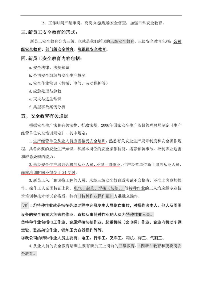 新員工安全生產(chǎn)及安全教育培訓(xùn)講義doc