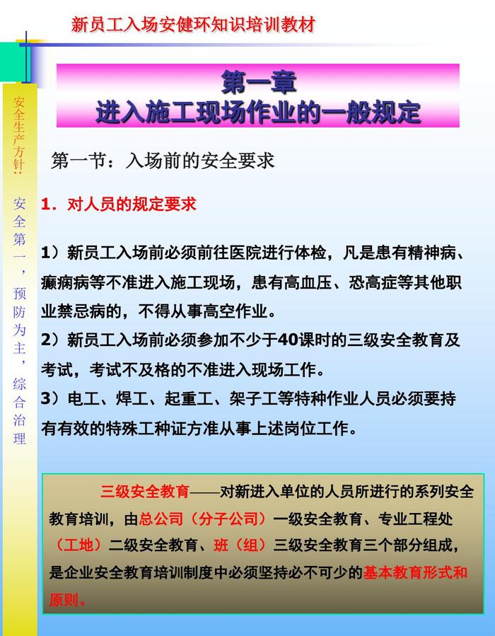 新員工進入施工現(xiàn)場三級安全教育培訓教材ppt