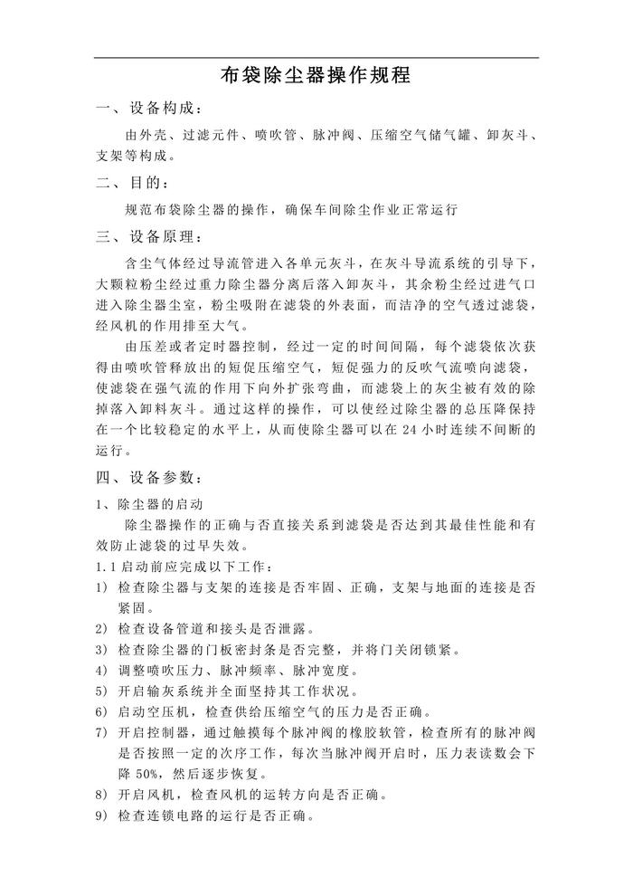 布袋除塵器操作規(guī)程doc