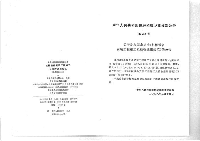 GB 50231-2009 機械設備安裝工程施工及驗收通用規(guī)范pdf