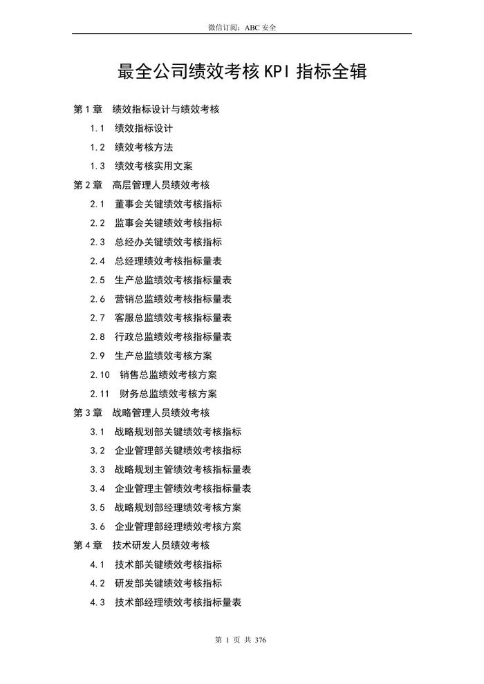 最全企業(yè)績效考核KPI指標(biāo)(317頁)docx